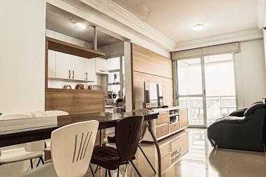 Entre neste apartamento e sinta o conforto imediato. A sala para dois ambientes recebe luz natural da face sul-leste e se conecta à sacada com churrasqueira à gás, ideal para momentos de lazer. A área de serviço é separada, garantindo praticidade no dia a dia.