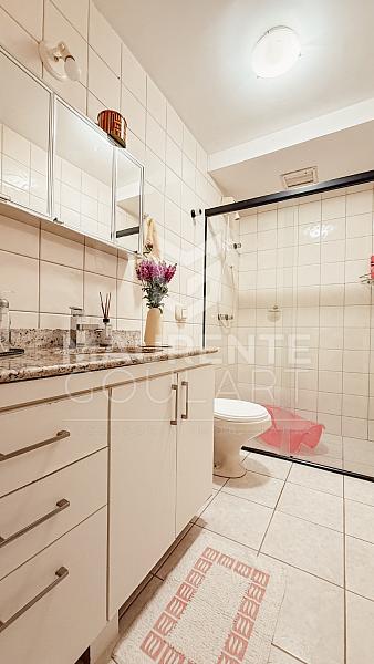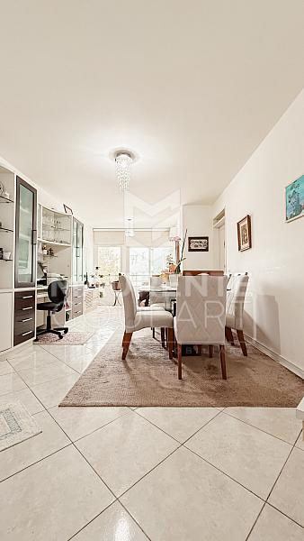 A planta é extremamente funcional: sala ampla para dois ambientes, cozinha com armários planejados e área de serviço separada e ventilada, garantindo praticidade no dia a dia. Os banheiros espaçosos e bem iluminados, o ar-condicionado e o sol da manhã completam o conforto em cada detalhe.