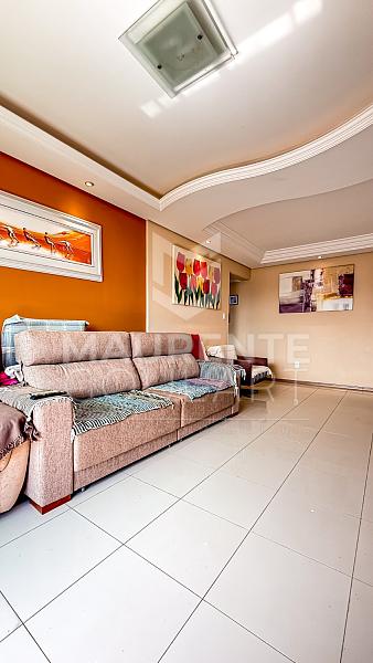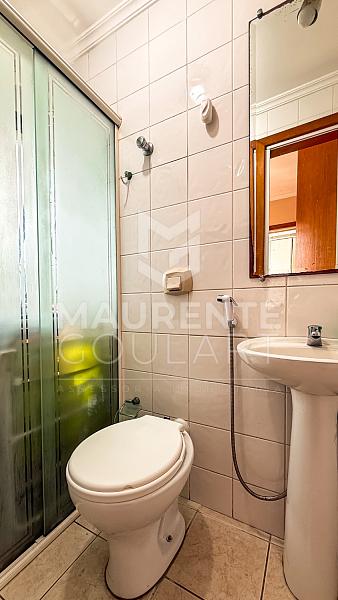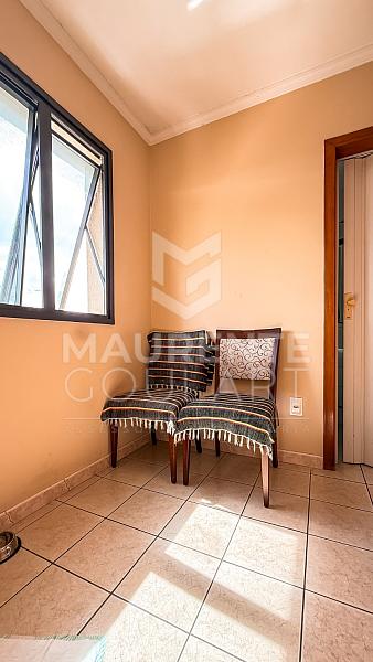 A planta é extremamente bem distribuída. São 3 dormitórios, sendo 1 suíte confortável, além de banheiro social e banheiro de serviço — um diferencial que faz toda a diferença para famílias maiores ou para quem preza por funcionalidade no dia a dia.