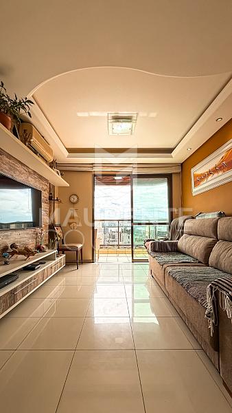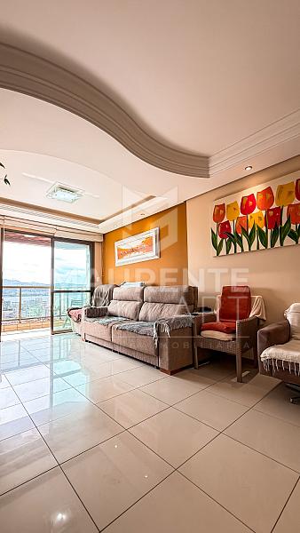 A sala para dois ambientes é ampla, muito bem iluminada pelo sol da manhã, com aquele clima agradável e ventilação natural que só os apartamentos bem posicionados oferecem. A sacada com vista mar é o espaço perfeito para começar o dia com um café apreciando o horizonte ou relaxar no fim da tarde sentindo a brisa.