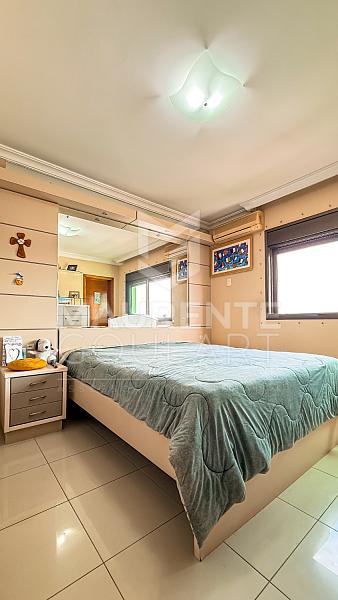 O apartamento está totalmente mobiliado com planejados em todos os cômodos, o que demonstra cuidado, padrão e otimização de espaço. Acabamento em gesso, piso porcelanato e ar-condicionado completam o conforto. É um imóvel pronto para morar, sem necessidade de grandes intervenções.