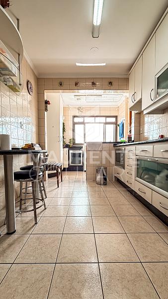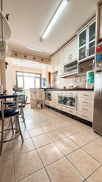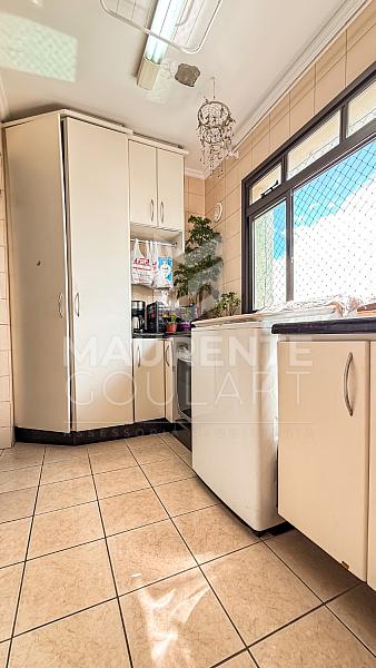 A cozinha é separada — algo cada vez mais valorizado por quem gosta de manter organização e privacidade — com excelente espaço e vista para o mar. A área de serviço também é independente, garantindo praticidade e organização.