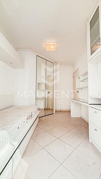 Na área íntima, o apartamento conta com quatro dormitórios, uma configuração rara e muito valorizada em Coqueiros, ideal para famílias maiores ou para quem precisa de espaço extra para escritório, quarto de hóspedes ou sala de estudos. A suíte possui closet, proporcionando ainda mais conforto e organização. Além disso, o imóvel dispõe de banheiro social bem distribuído para atender os demais dormitórios.