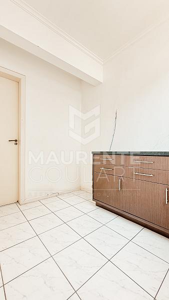 A cozinha é separada, algo cada vez mais valorizado por quem gosta de manter os ambientes bem organizados e funcionais. Ao lado, a área de serviço independente, com banheiro de apoio, oferece praticidade no dia a dia.