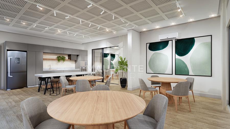 • Piso porcelanato nas áreas sociais do apartamento