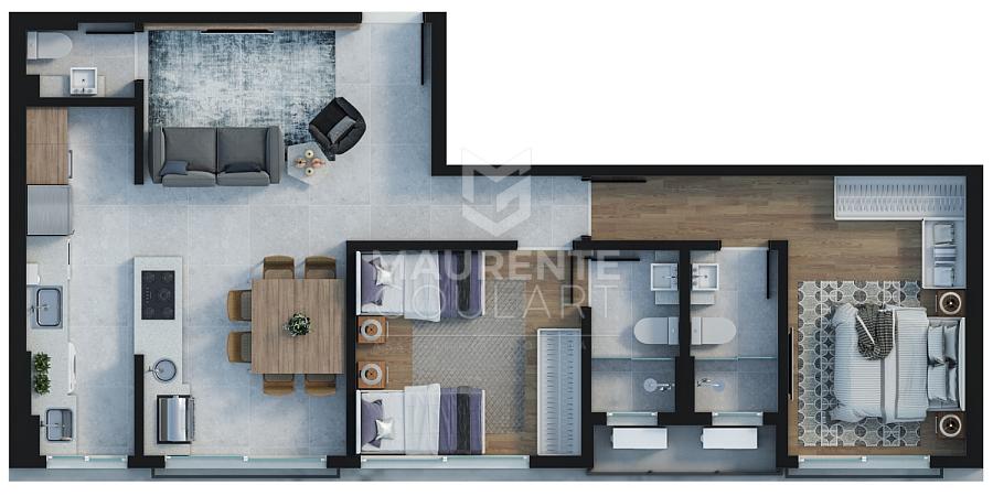2 dormitórios (2 suítes)