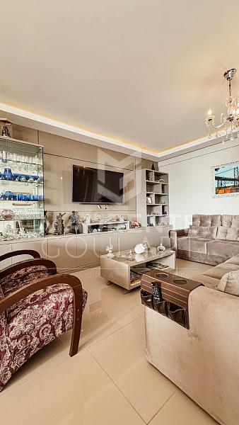 Ao entrar neste encantador apartamento de 137m² de área privativa, você é imediatamente acolhido por uma atmosfera de conforto e bem-estar. A luz natural do sol da manhã invade o espaço, realçando a vista espetacular do mar, visível através das grandes janelas e da ampla sacada.