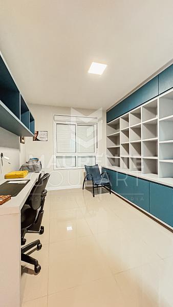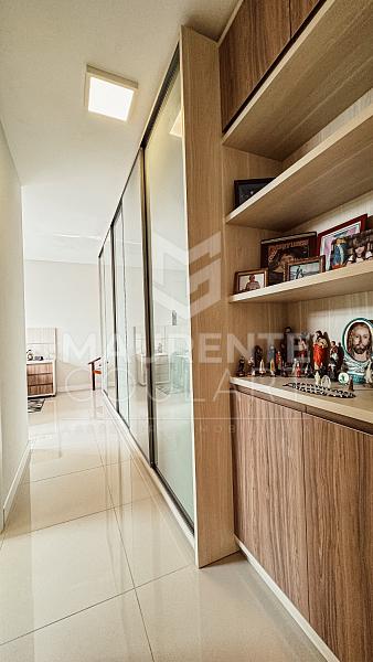 Seguindo pelo corredor, você encontra três suítes amplas, cada uma garantindo o máximo de privacidade e conforto. As persianas são manuais, mas com estrutura para persianas elétricas nos dormitórios, o que permite que você ajuste a luz ao seu gosto, proporcionando noites tranquilas e dias bem iluminados. Há também um espaço ideal para home office, perfeito para quem trabalha em casa e precisa de um ambiente calmo e funcional. A suíte master possui toda a estrutura hidráulica para colocar uma banheira a gosto do cliente.