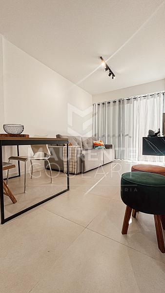 Com 1 dormitório bem distribuído, o imóvel é semi mobiliado e conta com móveis planejados que otimizam o espaço e trazem funcionalidade ao dia a dia. A sala é integrada à cozinha, criando um ambiente prático e aconchegante — ideal para quem vive sozinho ou em casal.