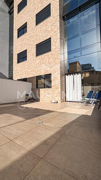 O banheiro social é bem ventilado, e o dormitório já possui ar-condicionado instalado, garantindo conforto em todas as estações. O destaque vai para o terraço descoberto, um espaço ao ar livre exclusivo que pode ser usado como área de lazer, para cultivar plantas, ou até montar um cantinho pet.