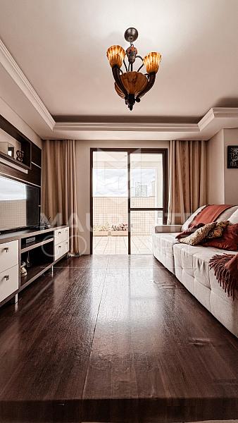 Ao entrar, você já percebe a excelente iluminação natural — com sol da manhã e da tarde — que valoriza a sala para dois ambientes integrada à cozinha americana, criando um espaço funcional, moderno e muito agradável para o dia a dia.