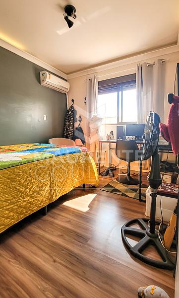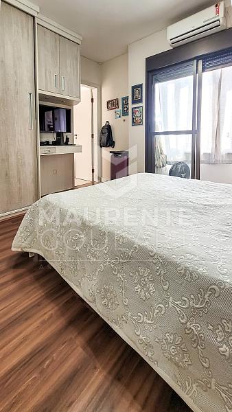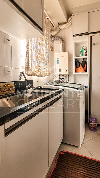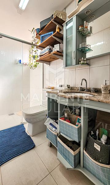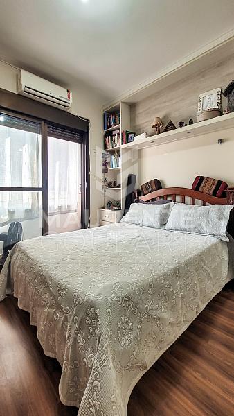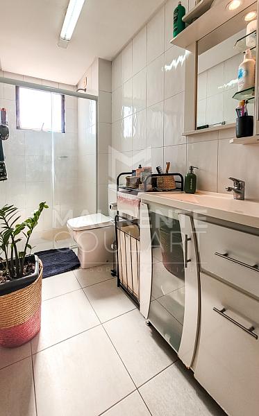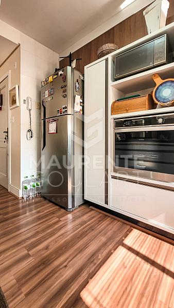 A cozinha prática e funcional, com móveis sob medida, foi pensada para otimizar o espaço e garantir que seu dia a dia seja prático e organizado. O apartamento conta com três quartos, sendo uma suíte aconchegante com sacada, todos equipados com ar condicionado, proporcionando conforto durante todo o ano. A planta é espaçosa e a posição solar privilegiada faz com que os ambientes estejam sempre bem iluminados.