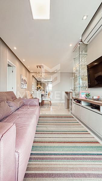 Ao entrar neste apartamento, a sensação é imediata de conforto, sofisticação e bem-estar. A sala ampla para dois ambientes, iluminada pelo agradável sol da manhã, se integra perfeitamente à cozinha americana planejada, criando um espaço moderno, funcional e extremamente acolhedor — ideal tanto para o dia a dia quanto para receber amigos e familiares.