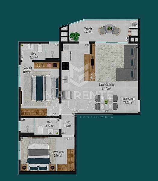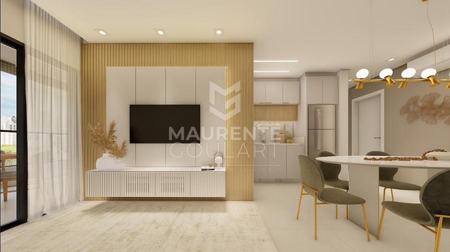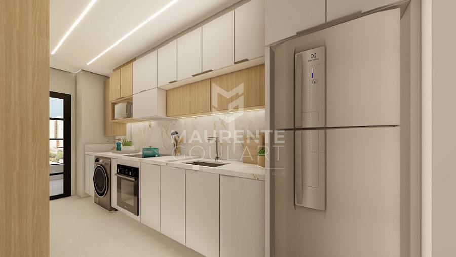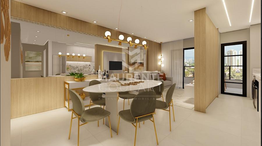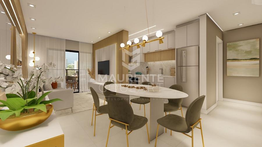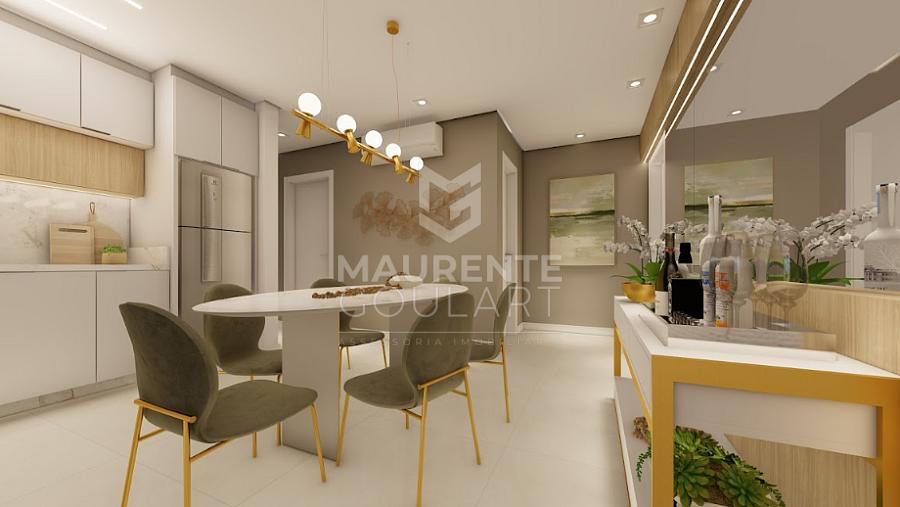 sala de estar e jantar integradas criam um ambiente amplo e funcional, perfeito para momentos especiais. A sacada com churrasqueira é um convite para aproveitar bons momentos ao ar livre, sempre com a brisa do mar.