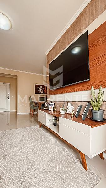 A sala para dois ambientes é ampla e acolhedora, perfeita para reunir a família ou receber amigos. E o melhor: o apartamento possui ventilação cruzada, o que deixa o ar sempre leve e fresco, além de realçar a luminosidade natural em todos os cômodos.