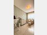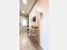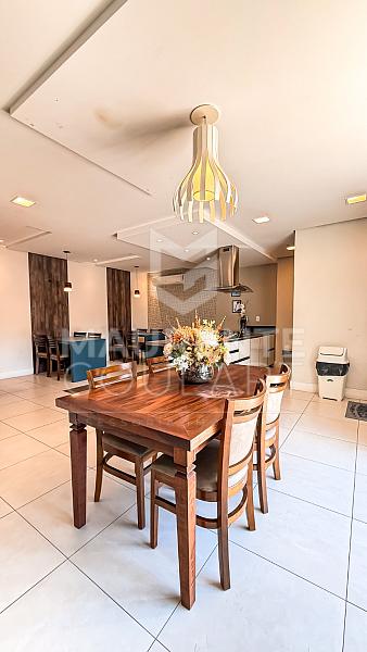 A sala para dois ambientes, ampla e muito bem iluminada, valoriza cada metro quadrado. O piso porcelanato aliado ao acabamento em gesso traz sofisticação na medida certa, enquanto a integração com a cozinha americana, equipada com móveis planejados, oferece praticidade para o dia a dia e elegância para receber bem.