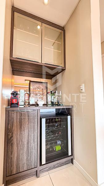 Da sala, você acessa a sacada com churrasqueira a carvão, um espaço que, na prática, vira o coração do apartamento. Ideal para reunir a família, receber amigos e aproveitar momentos especiais com privacidade, ainda mais por estar em andar alto, o que garante uma vista mais aberta e excelente ventilação.