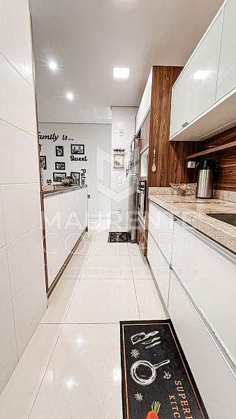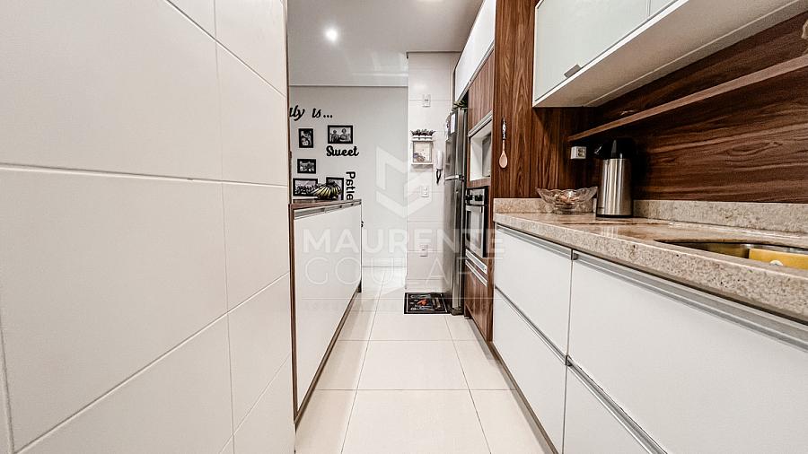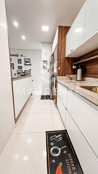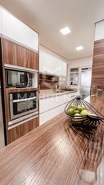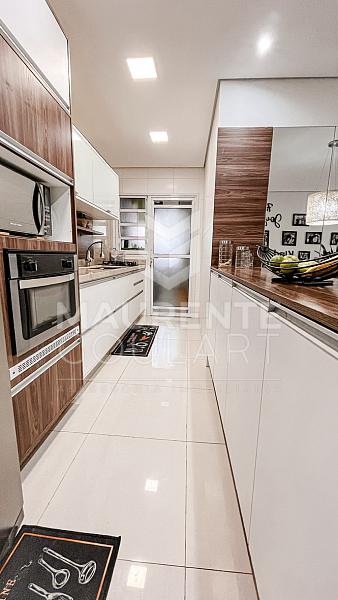 A cozinha é um verdadeiro destaque, com móveis planejados de alta qualidade que oferecem uma solução eficiente para o armazenamento e preparo de alimentos. Além disso, a área de serviço adjacente é um espaço funcional que facilita as tarefas do dia a dia.