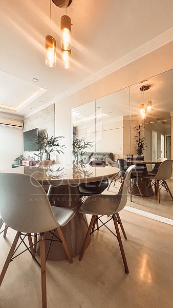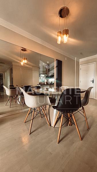 A cozinha planejada é prática e já equipada com armários sob medida, enquanto a área de serviço separada mantém tudo organizado. São três dormitórios, sendo uma suíte com sacada privativa, que oferecem tranquilidade e privacidade. Semi-mobiliado, o imóvel já conta com armários nos dormitórios e cozinha, pronto para atender suas necessidades desde o primeiro dia.