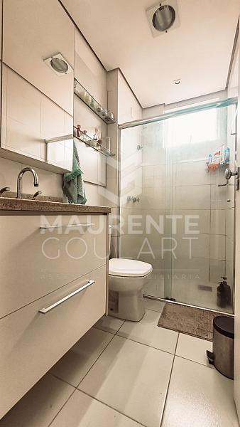 Ao entrar, a sala com forro de gesso revela um ambiente aconchegante e bem iluminado, perfeita para momentos de lazer ou trabalho no home office, que também pode ser transformado em mais um dormitório conforme a sua necessidade. A sacada espaçosa, com churrasqueira a carvão, convida para apreciar a vista livre – com um toque especial do mar ao fundo – e criar memórias inesquecíveis com amigos e família.