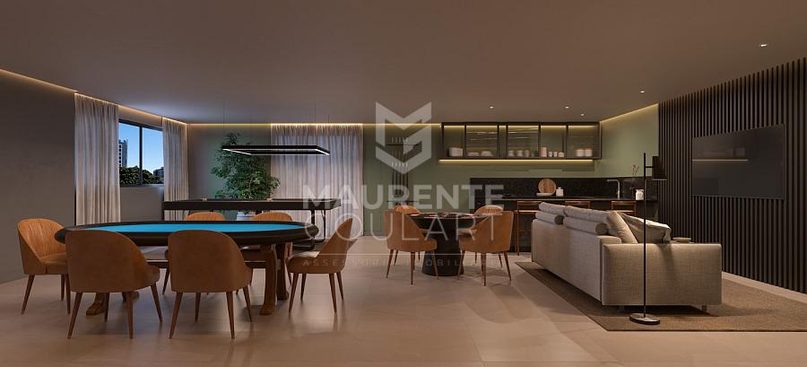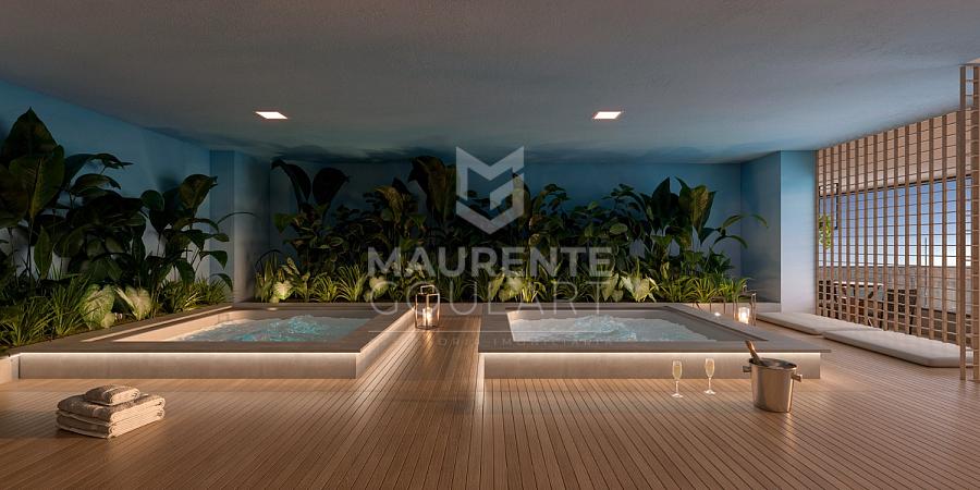 O acabamento é de alto padrão, com piso porcelanato nas áreas sociais, vinílico (ou laminado) nos dormitórios, acabamento em gesso, persianas motorizadas nos quartos e fechadura digital com biometria. O imóvel ainda oferece aquecimento de água e gás, 3 vagas de garagem e 1 hobby-box.